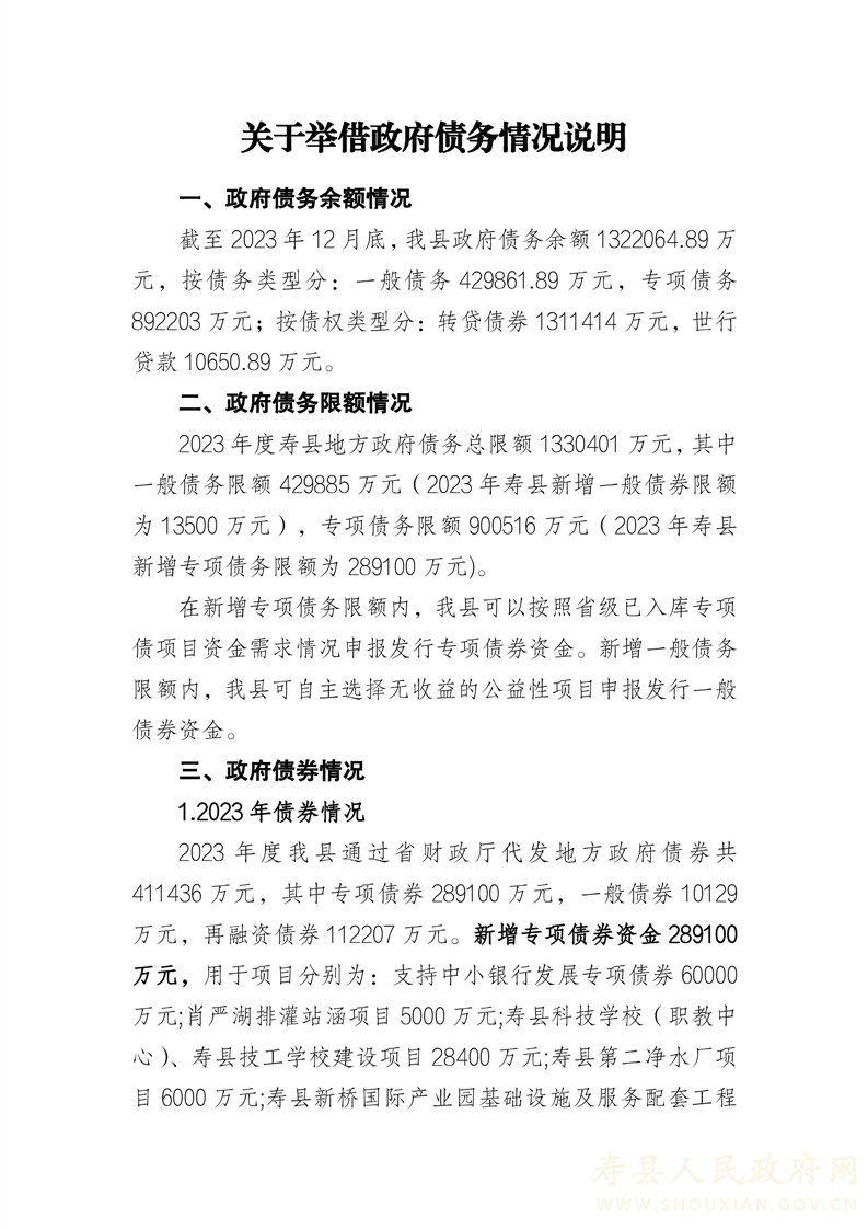 关于举借政府债务情况说明