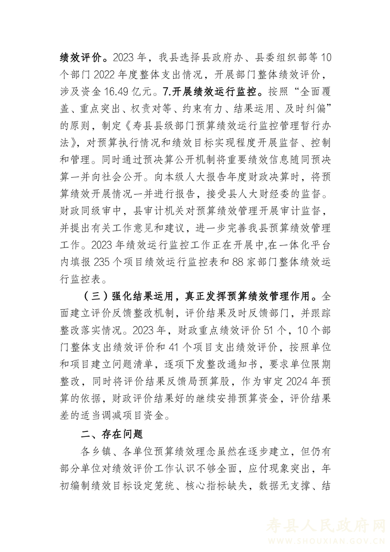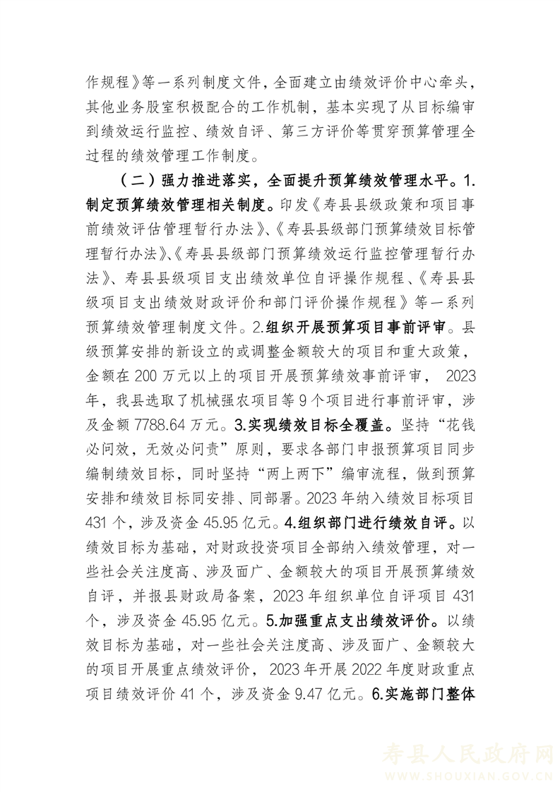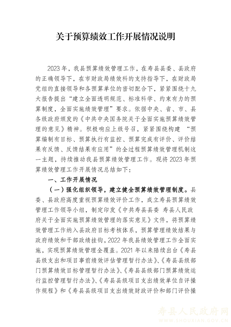 关于2023年预算绩效工作开展情况说明