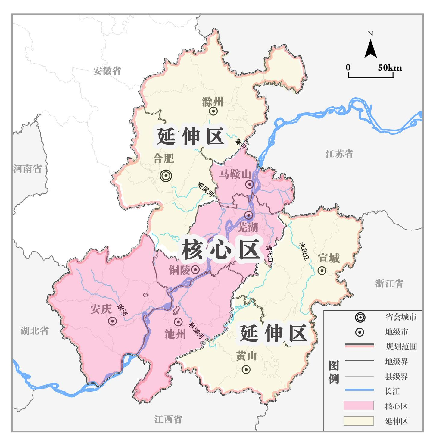 依据国家《长江经济带发展规划纲要》《长江文化保护传承弘扬规划》和安徽省《关于深化文旅融合彰显徽风皖韵加快建设高品质旅游强省的意见》等文件,编制本规划。规划范围包括核心区马鞍山、芜湖、铜陵、池州、安庆五市,延伸区合肥、滁州、宣城、黄山四市,共计9个地市。