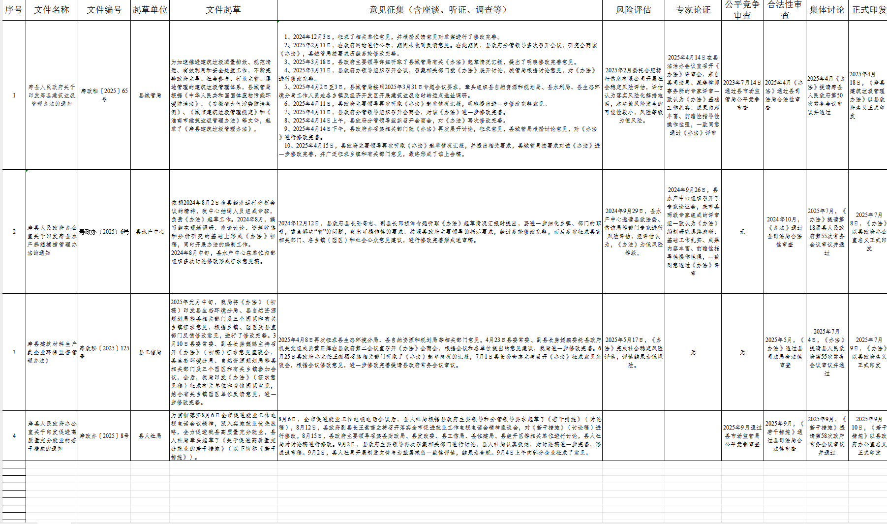 寿县2025年1-10月规范性文件公众参与、专家论证、风险评估、集体讨论等程序开展情况汇总表