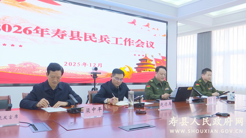 12月5日,寿县召开2026年民兵工作会议。县委副书记、代县长、县经开区管委会主任赵德兵出席会议并讲话。县委常委、人武部上校部长付德勇及县直有关单位、有关乡镇负责同志参加。