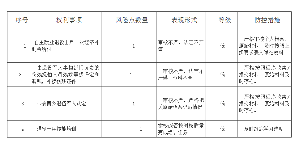 2022年寿县退役军人事务局权力事项廉政风险点情况一览表