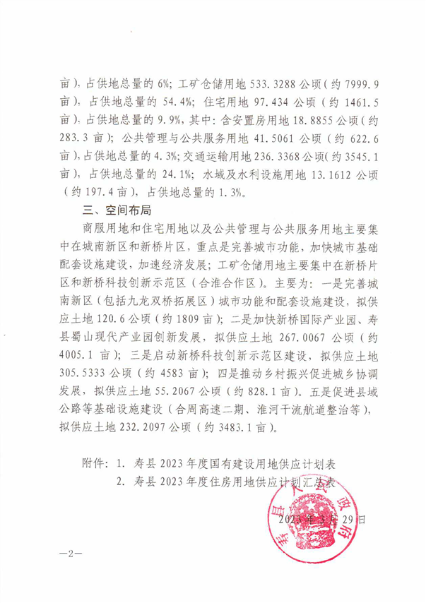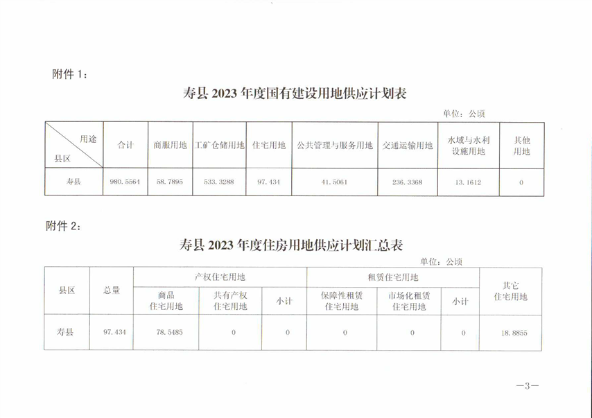 寿县人民政府关于寿县2023年国有建设用地供应计划的通知