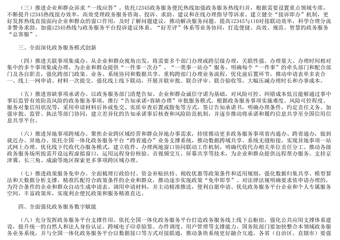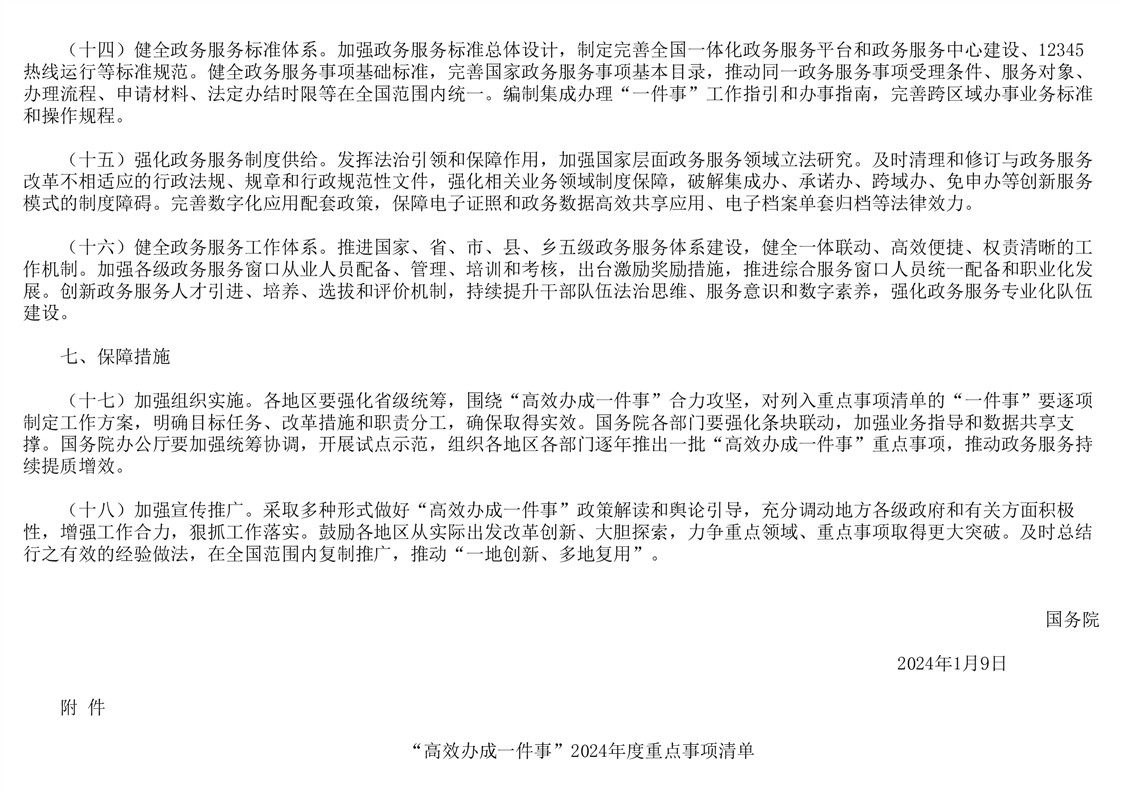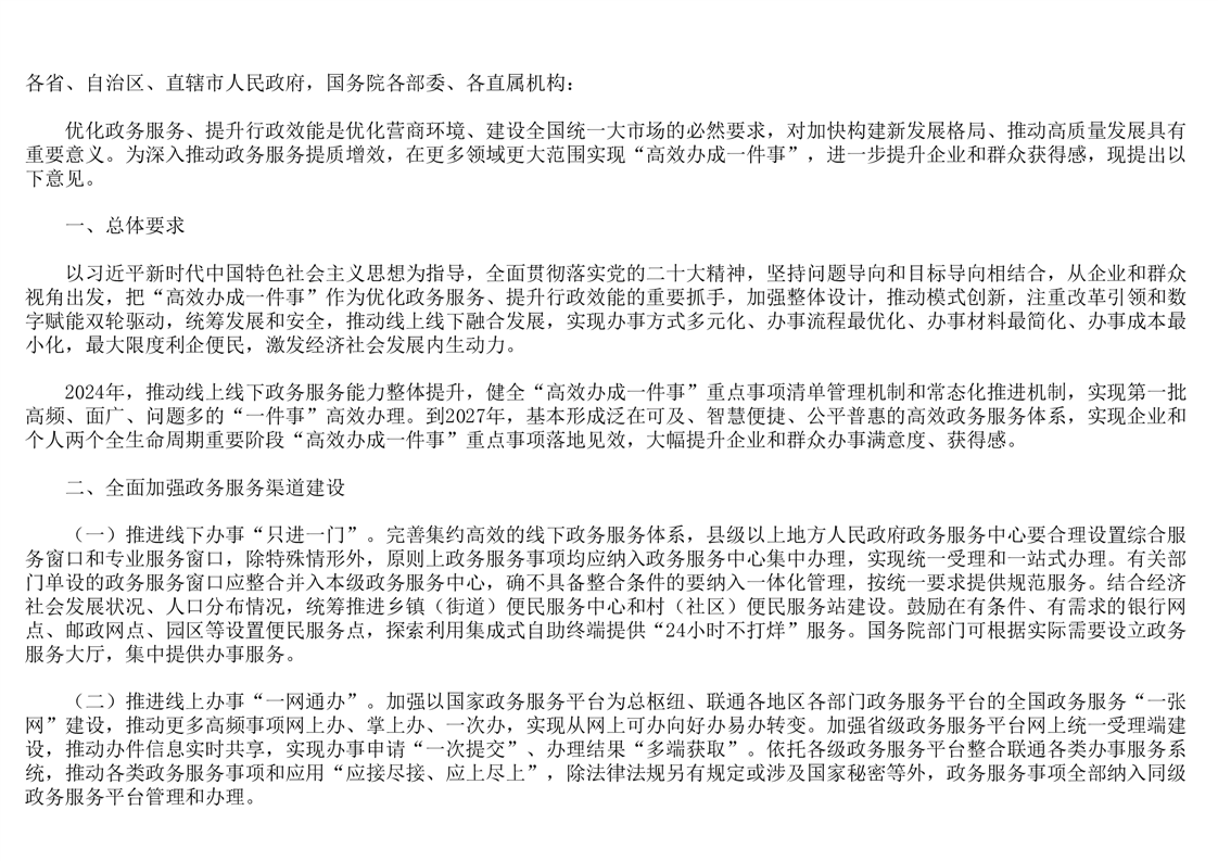 国务院关于进一步优化政务服务提升行政效能推动“高效办成一件事”的指导意见