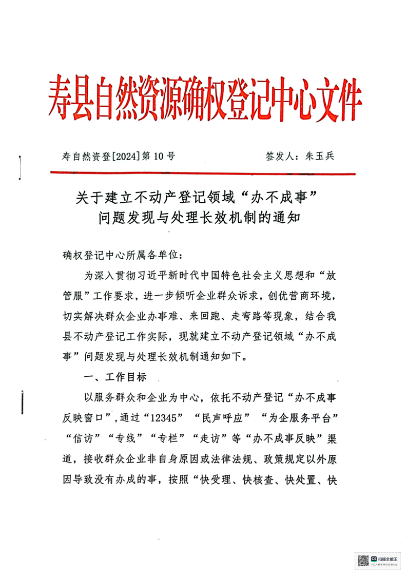 关于建立不动产登记领域“办不成事”问题发现与处理长效机制的通知