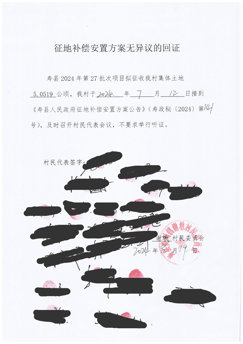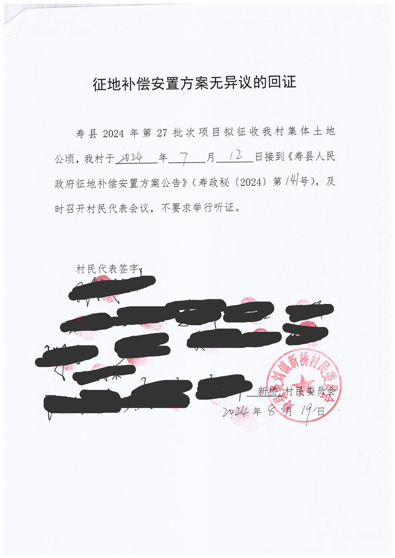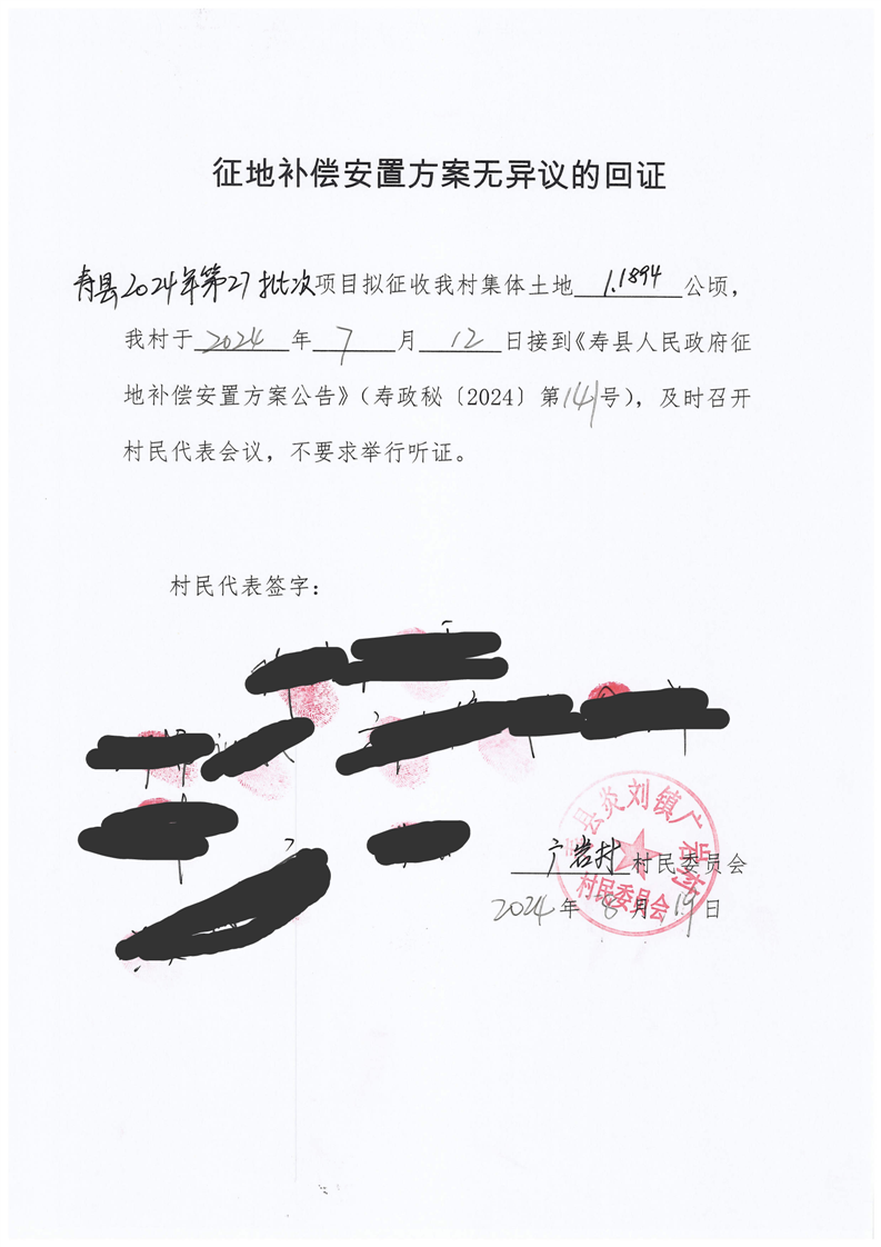 寿县2024年第27批次村庄建设用地征地补偿安置方案听证有关材料