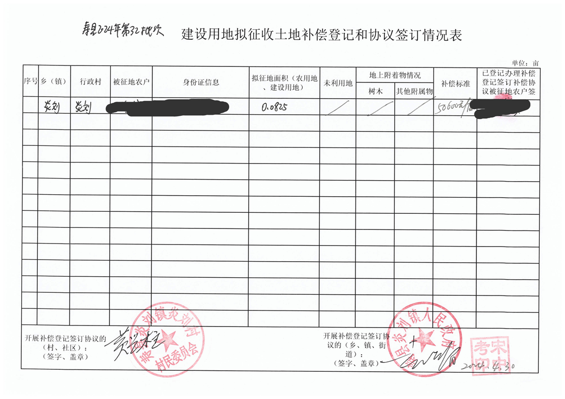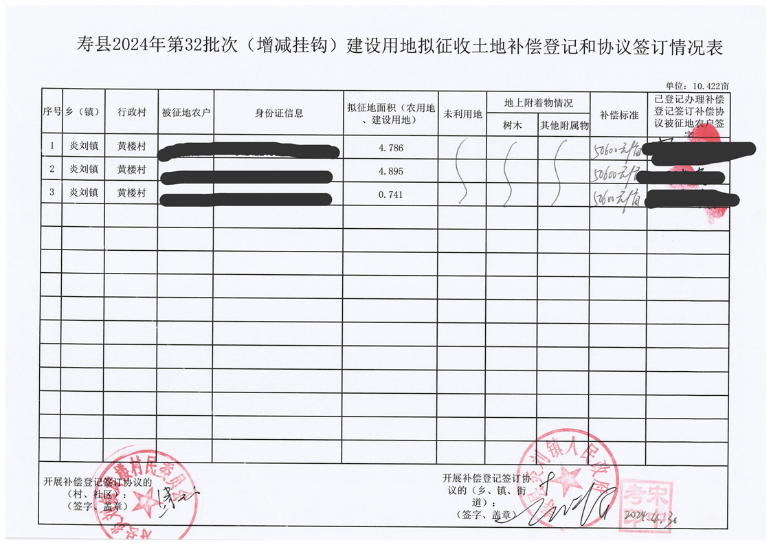 寿县2024年第32批次(增减挂钩)城镇建设用地协议签订情况表