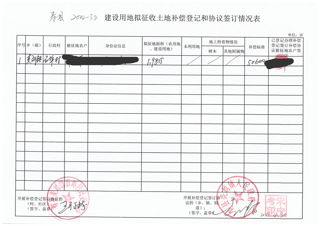 征地补偿登记