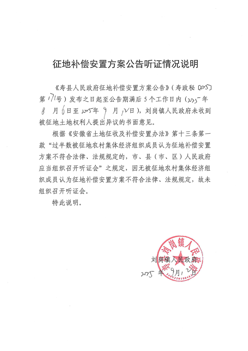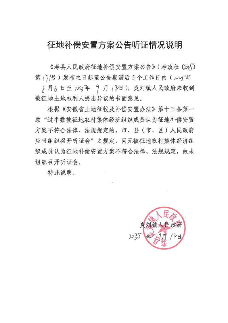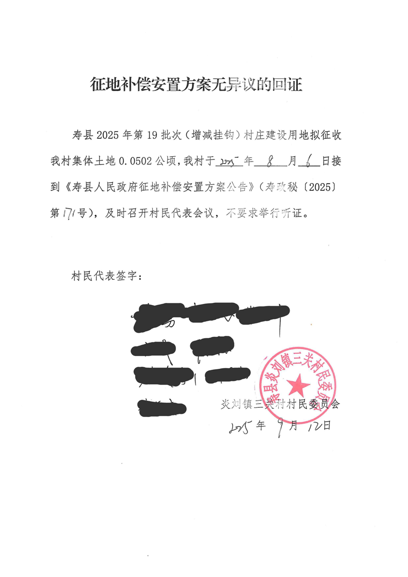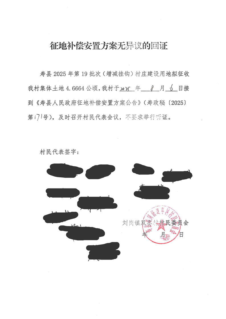 寿县2025年第19批次(增减挂钩)村庄建设用地征地补偿安置方案听证有关材料