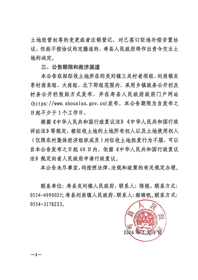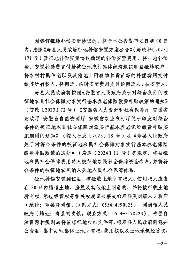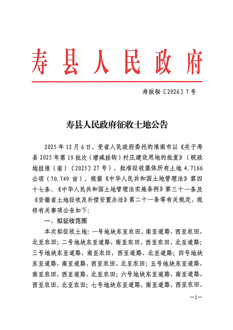 寿县2025年第19批次(增减挂钩)村庄建设用地征收土地公告