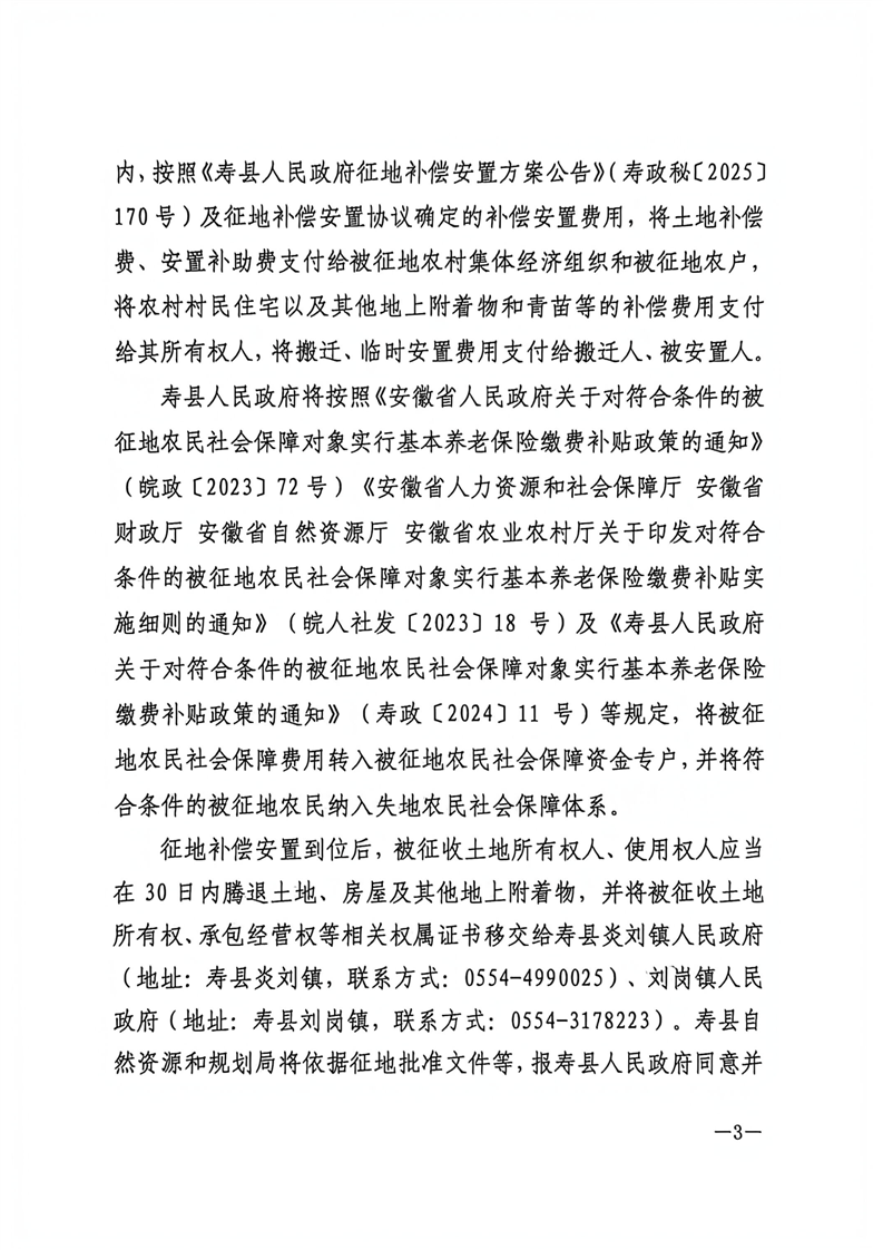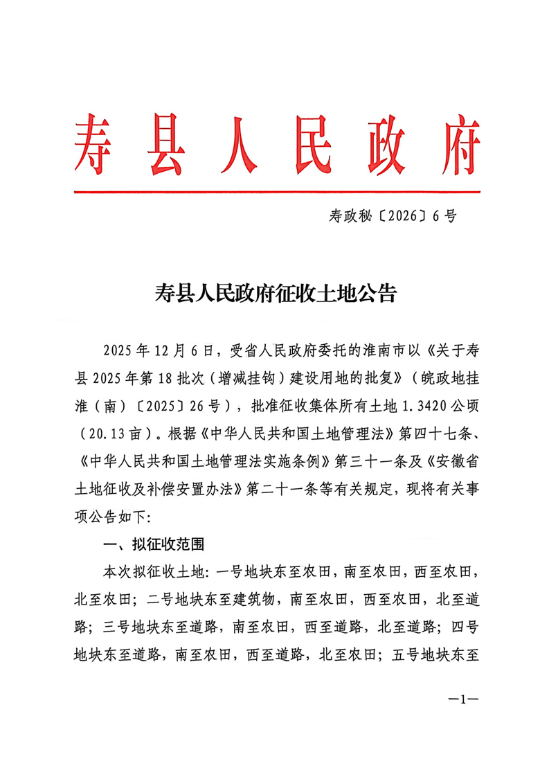 寿县2025年第18批次(增减挂钩)城镇建设用地征收土地公告