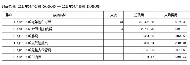 【医疗机构单病种费用】——2021年寿县县医院第三季度住院患者单病种平均费用