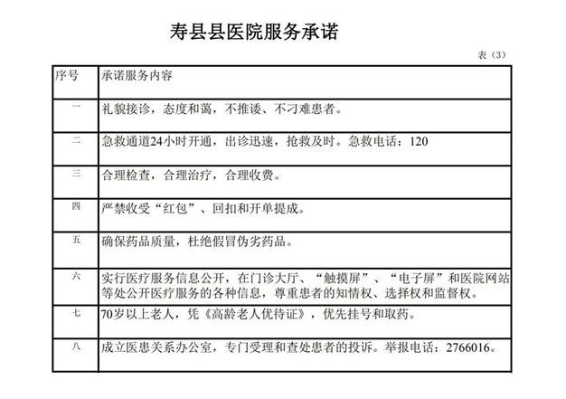 【医疗机构院务信息】——寿县县医院服务承诺