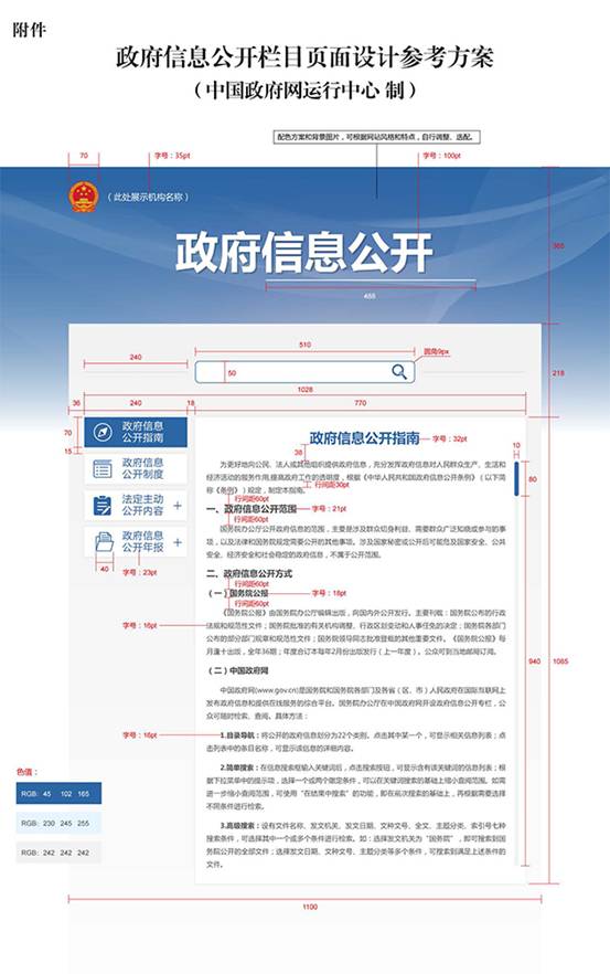 中国政府网运行中心根据上述要求设计了“政府信息公开栏目页面设计参考方案”,供参考使用。