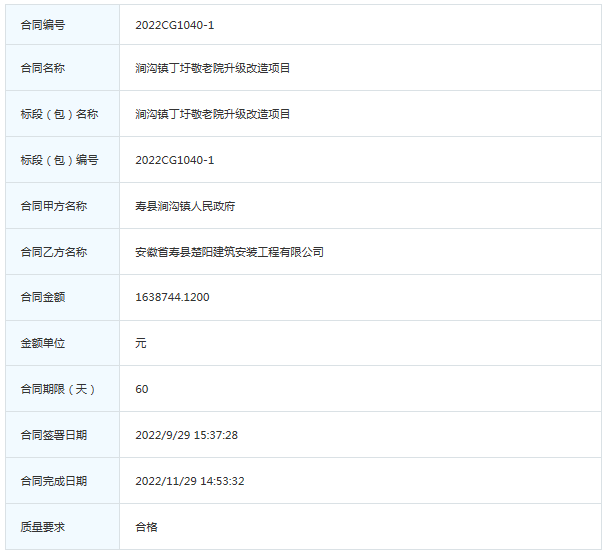| 名称: | 涧沟镇丁圩敬老院升级改造项目 |