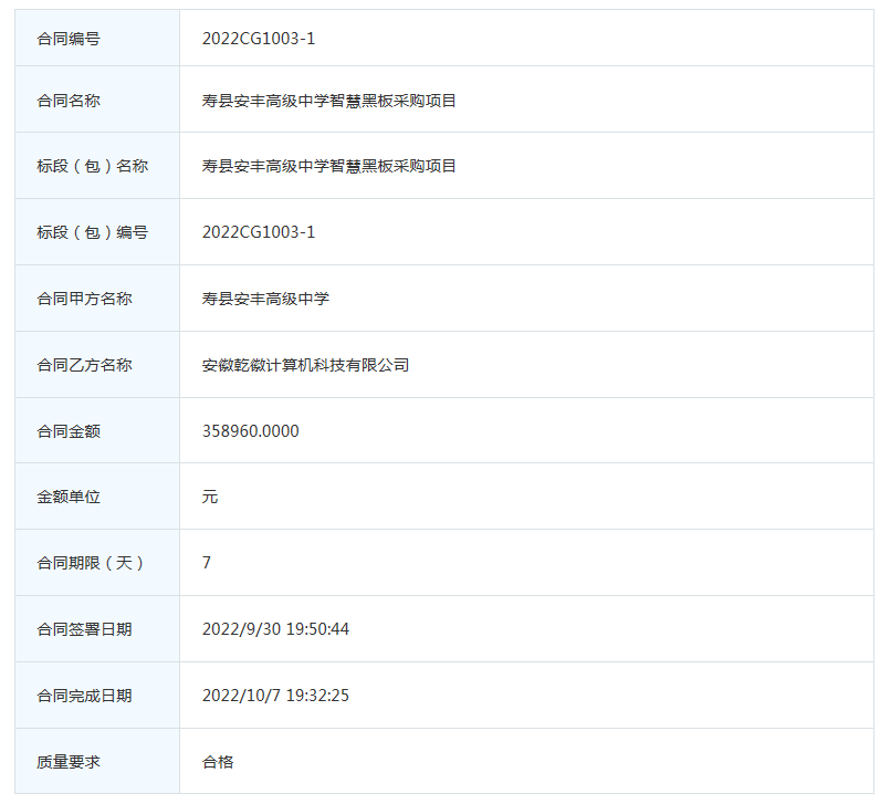 | 名称: | 寿县安丰高级中学智慧黑板采购项目 |