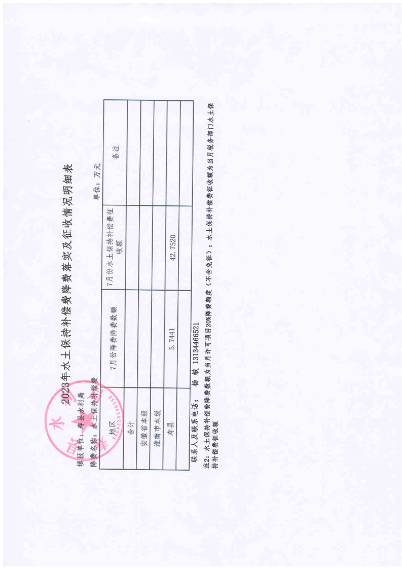 7月份水土保持补偿费降费落实及征收情况