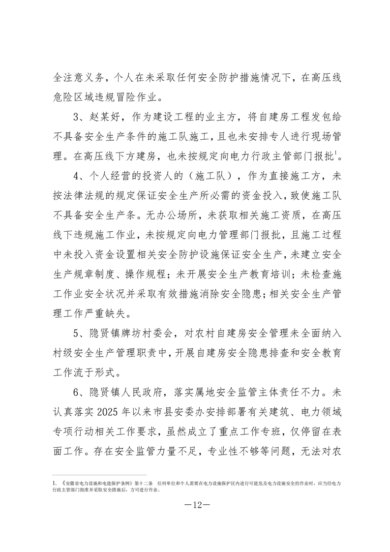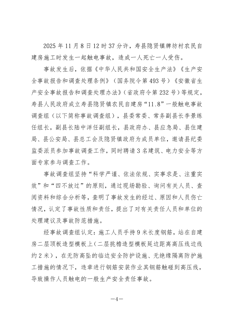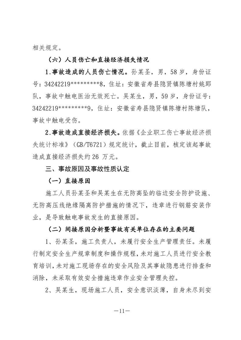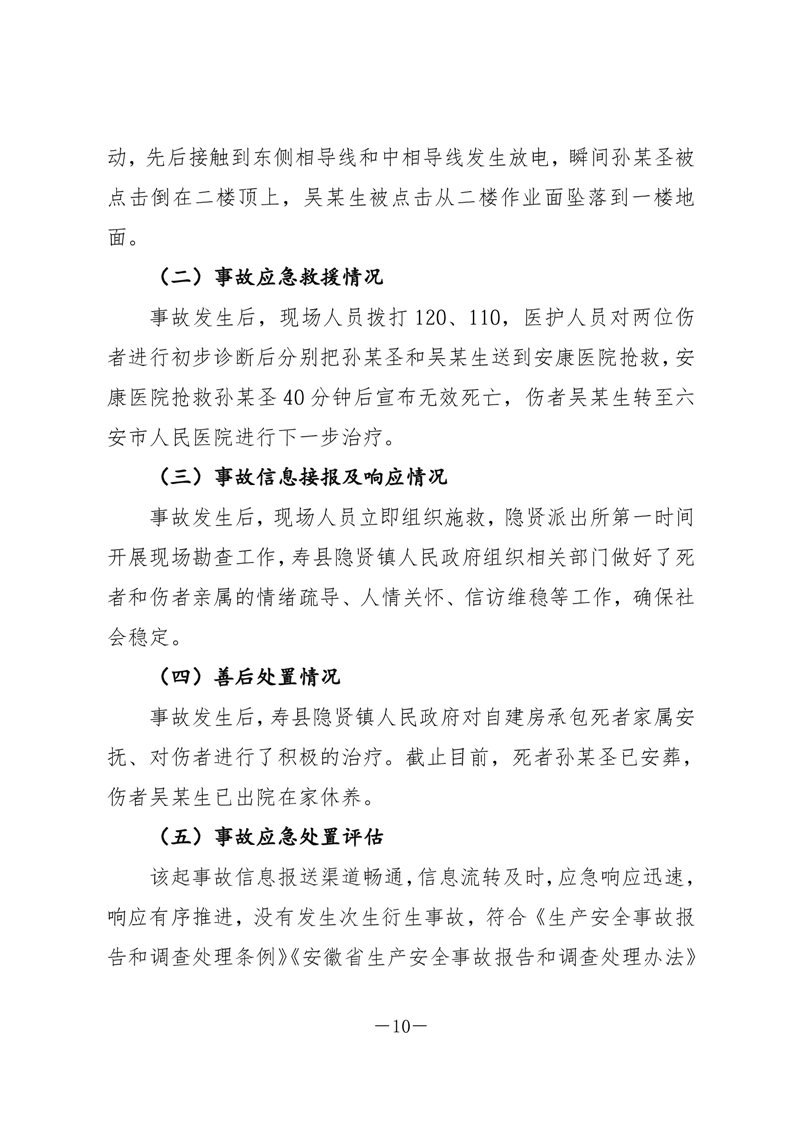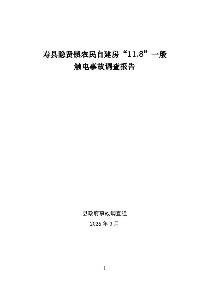 寿县隐贤镇农民自建房“11.8”一般触电事故调查报告