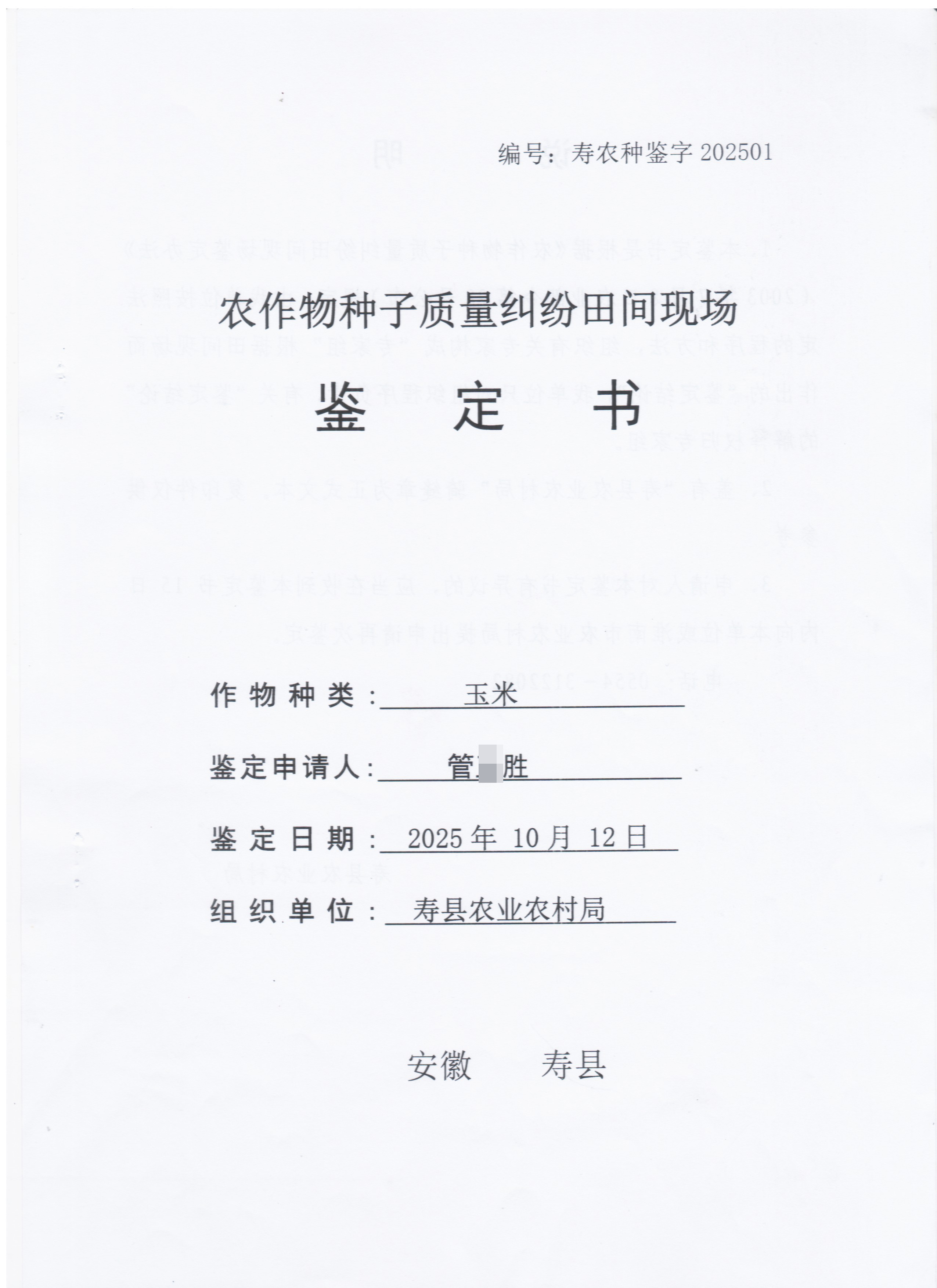 2025年农作物种子质量纠纷田间现场鉴定—(1)