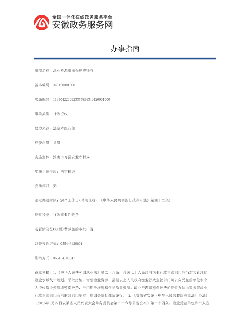 渔业资源增殖保护费征收办事指南