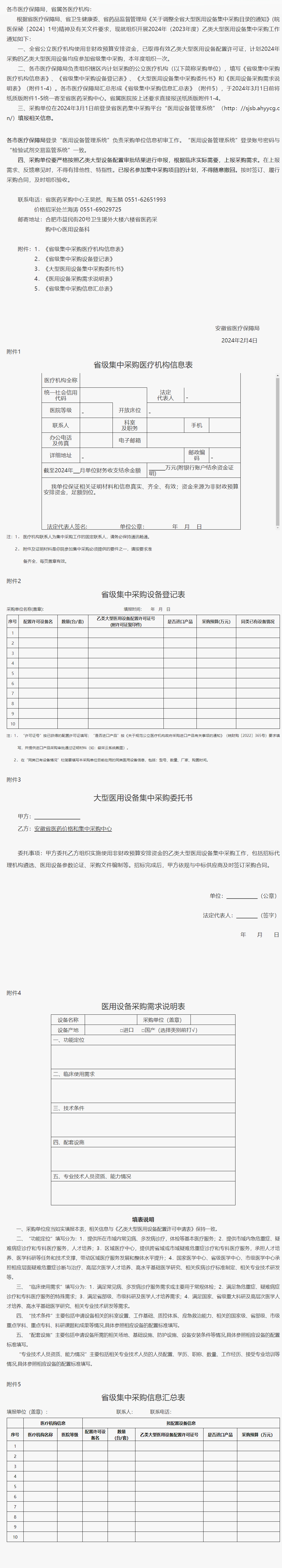 关于开展2024年全省乙类大型医用设备集中采购工作的通知