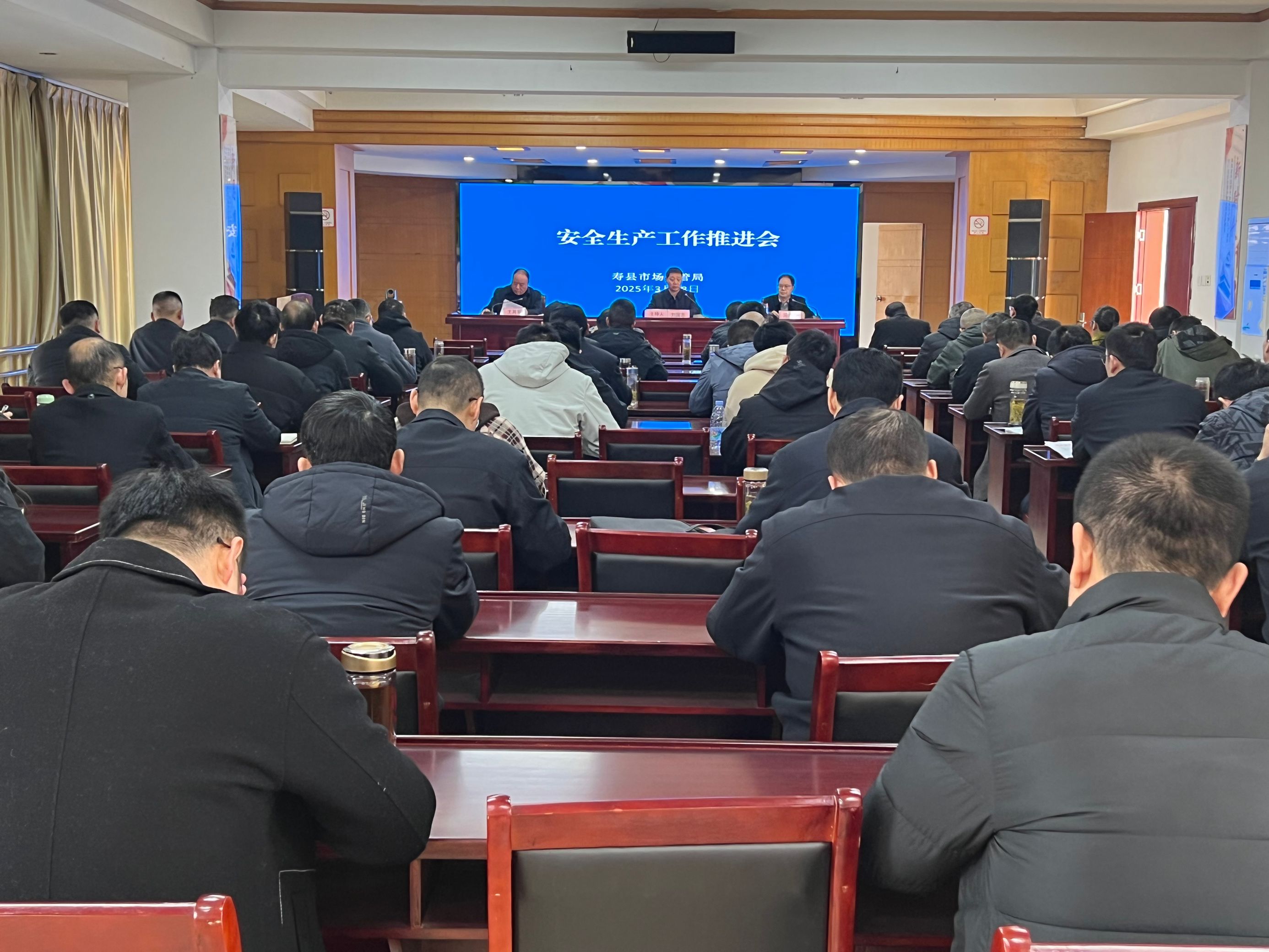 3月18日,寿县市场监管局召开安全生产工作推进会,局党组班子、各基层市场监管所、局机关各股室及二级机构负责人和部分业务股室60余人参加会议。