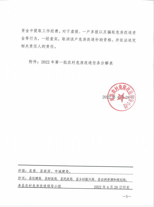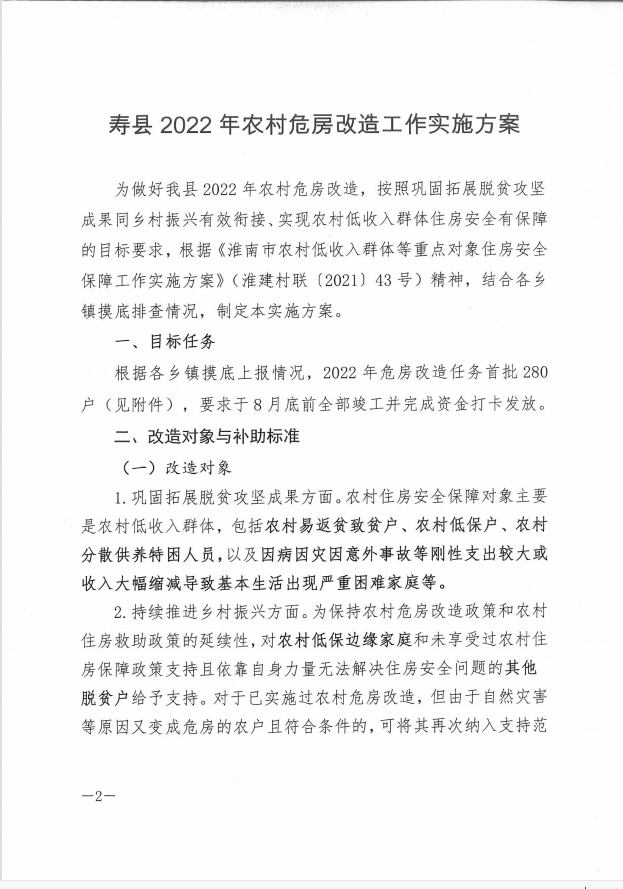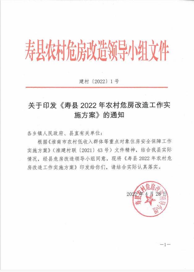 关于印发《寿县2022年农村危房改造工作实施方案》的通知
