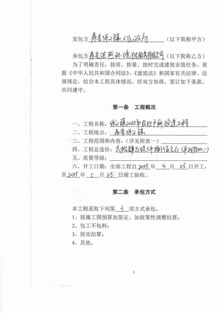 2025年改厕工程合同