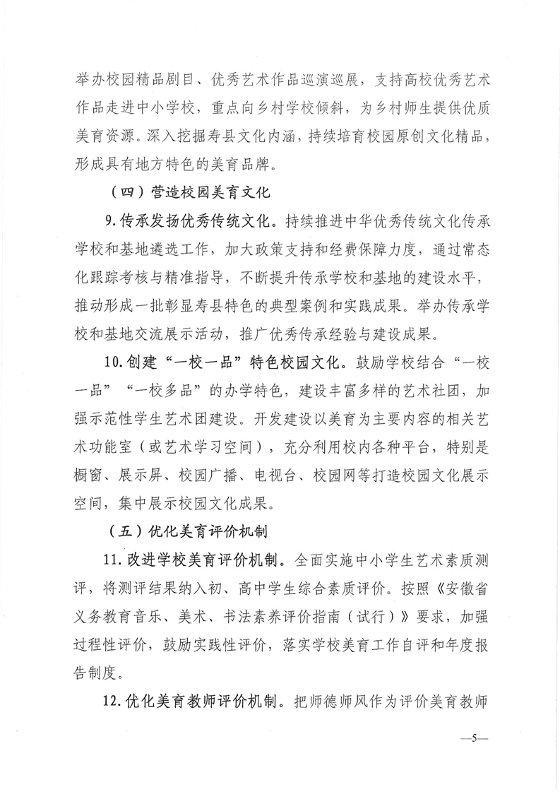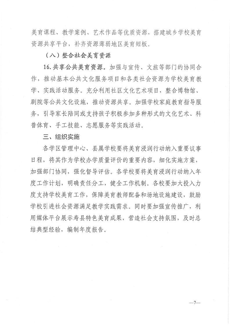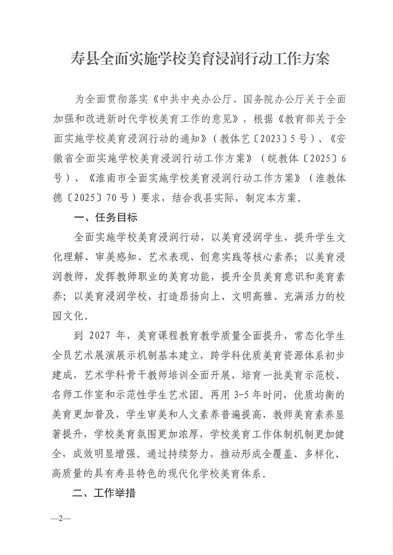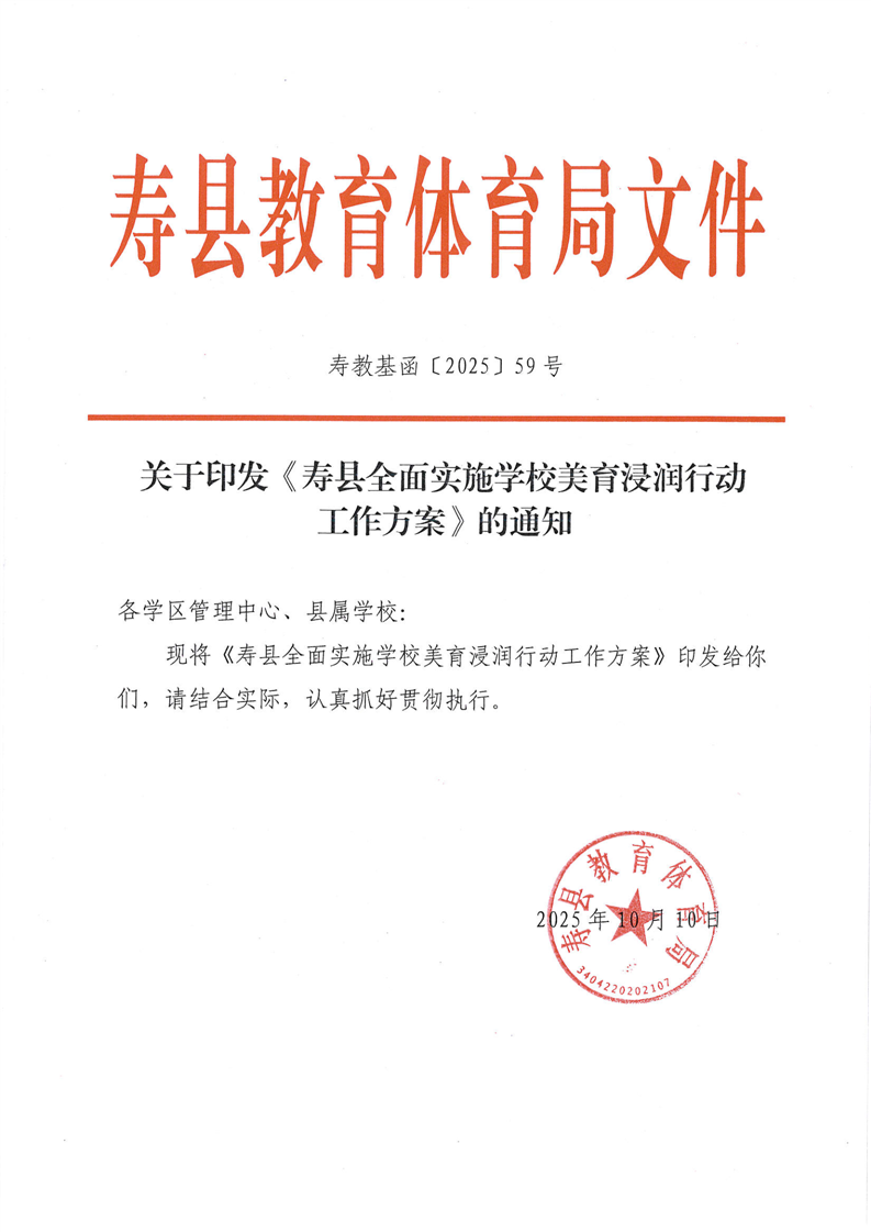 关于印发《寿县全面实施学校美育浸润行动工作方案》的通知
