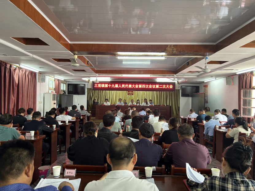 5月15日至16日,三觉镇召开第十九届人民代表大会第四次会议,会议应到代表74人,实到代表68人,在镇县人大代表以及非人大代表的镇领导班子成员、各村书记、镇直单位负责人列席会议。大会听取、审议并通过了李媛媛同志所作的《三觉镇人民政府工作报告》,文继臻同志所作的《三觉镇人大主席团工作报告》,汤彦同志所作的《三觉镇2024年预算执行情况和2025年预算的报告》,审议通过了<<三觉镇国土空间总体规划(2021---2035年)编制情况的报告》,票决产生了4项三觉镇2025年度民生实事项目。