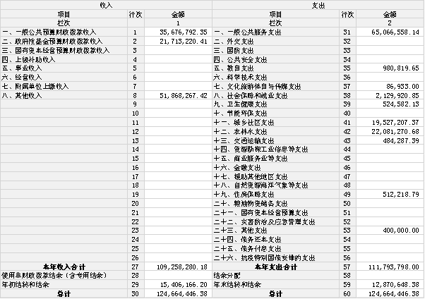 2024年度收入总计12466.44万元(含使用非财政拨款结余、年初结转和结余)、支出总计12466.44万元(含结余分配、年末结转和结余)。与2023年相比,收、支总计各增加1232.69万元,增长10.97%,主要原因是政府性基金预算收入增加。