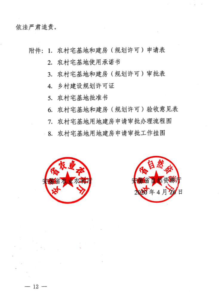 安徽省农业农村厅安徽省自然资源厅关于进一步加强农村宅基地审批管理的实施意见