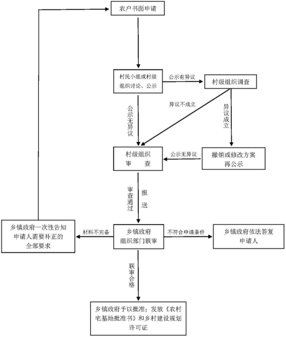没有分设村民小组或宅基地和建房申请等事项已统一由村 级组织办理的,农户直接向村级组织提出申请,经村民代表会议讨论通过并在本集体经济组织范围内公示后,由村级组织签署意见,报送乡镇人民政府。