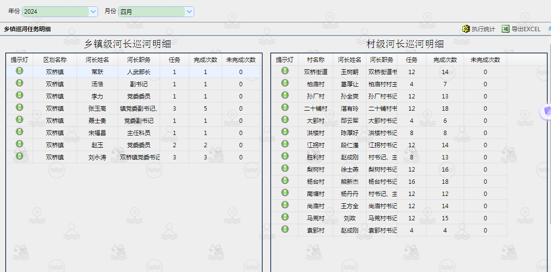 双桥镇2024年6月份镇、村河(湖)长巡河统计