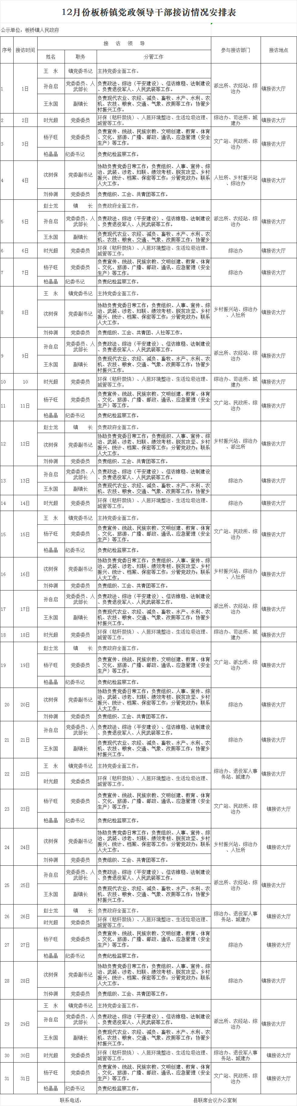板桥镇党政领导干部接访情况安排表(2025年12月份)