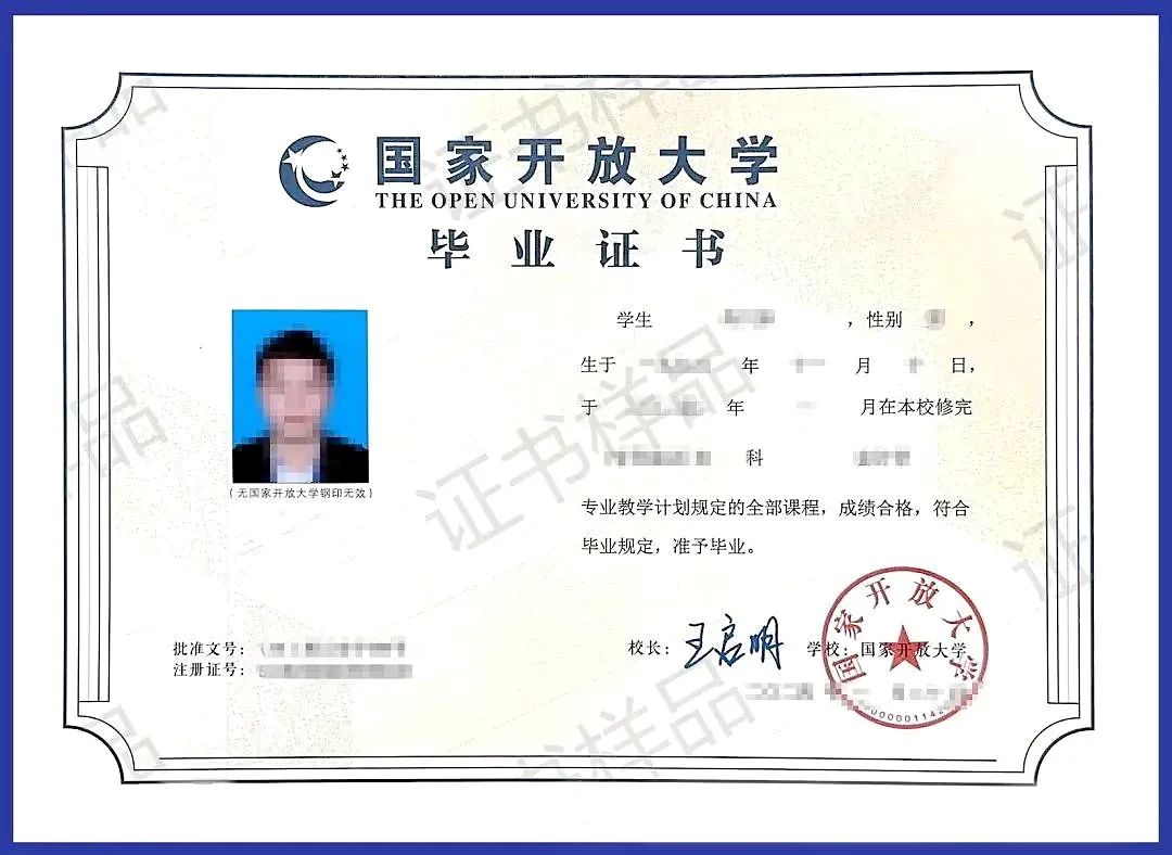 毕业证由教育部统一监制、国家开放大学核发毕业证,入学后在学信网注册学籍,国家承认学历。