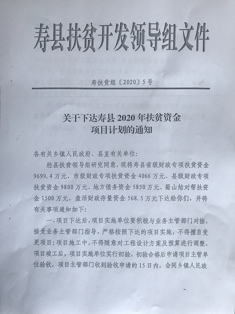 附件:关于下达寿县2020年扶贫资金项目计划的通知(寿扶贫组〔2020〕5号)