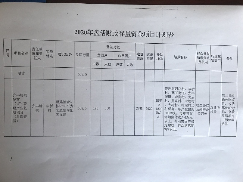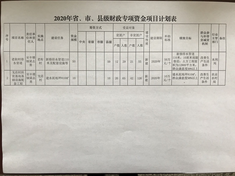 关于2020年扶贫资金项目计划的公示