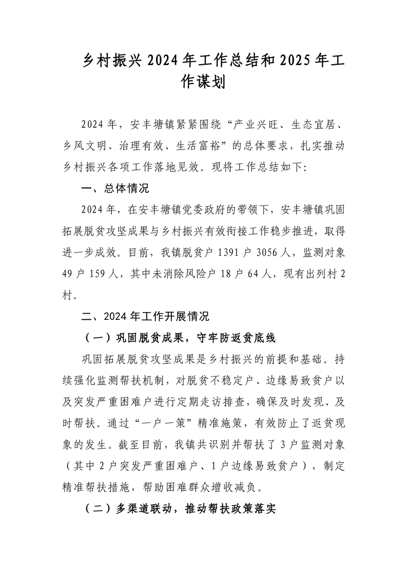 乡村振兴2024年工作总结2024年安丰塘镇乡村振兴与脱贫攻坚有效衔接计划
