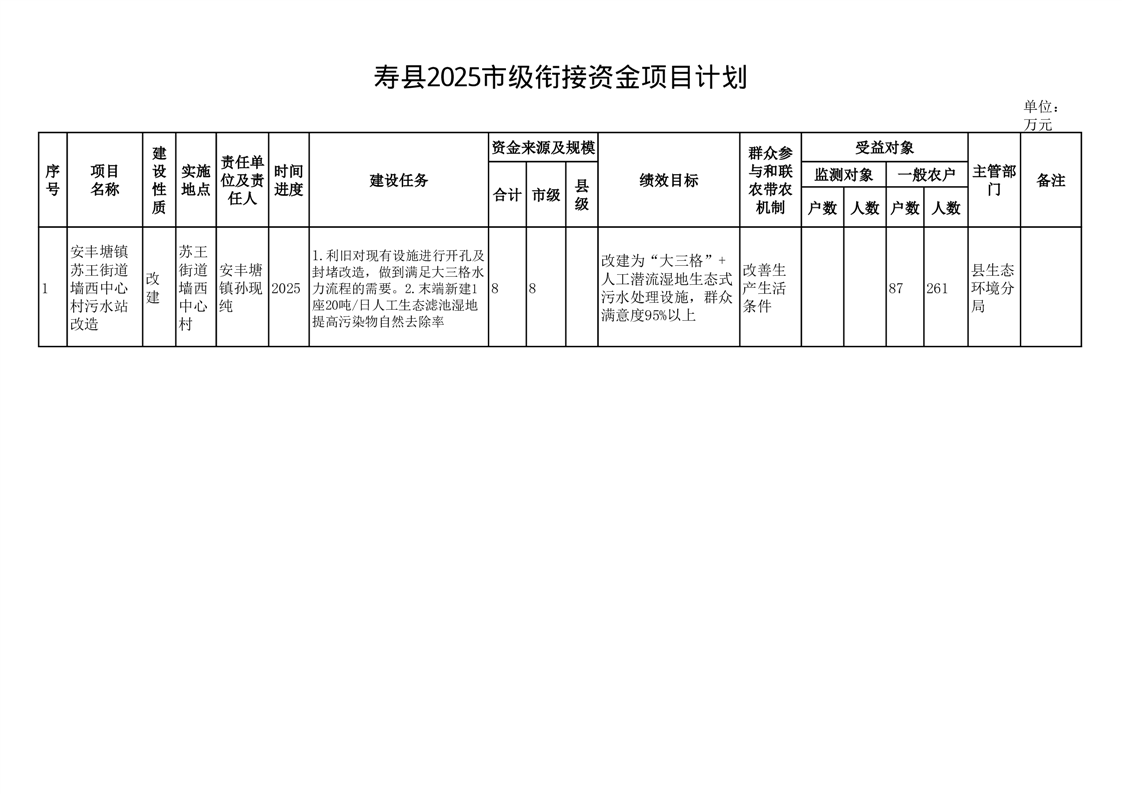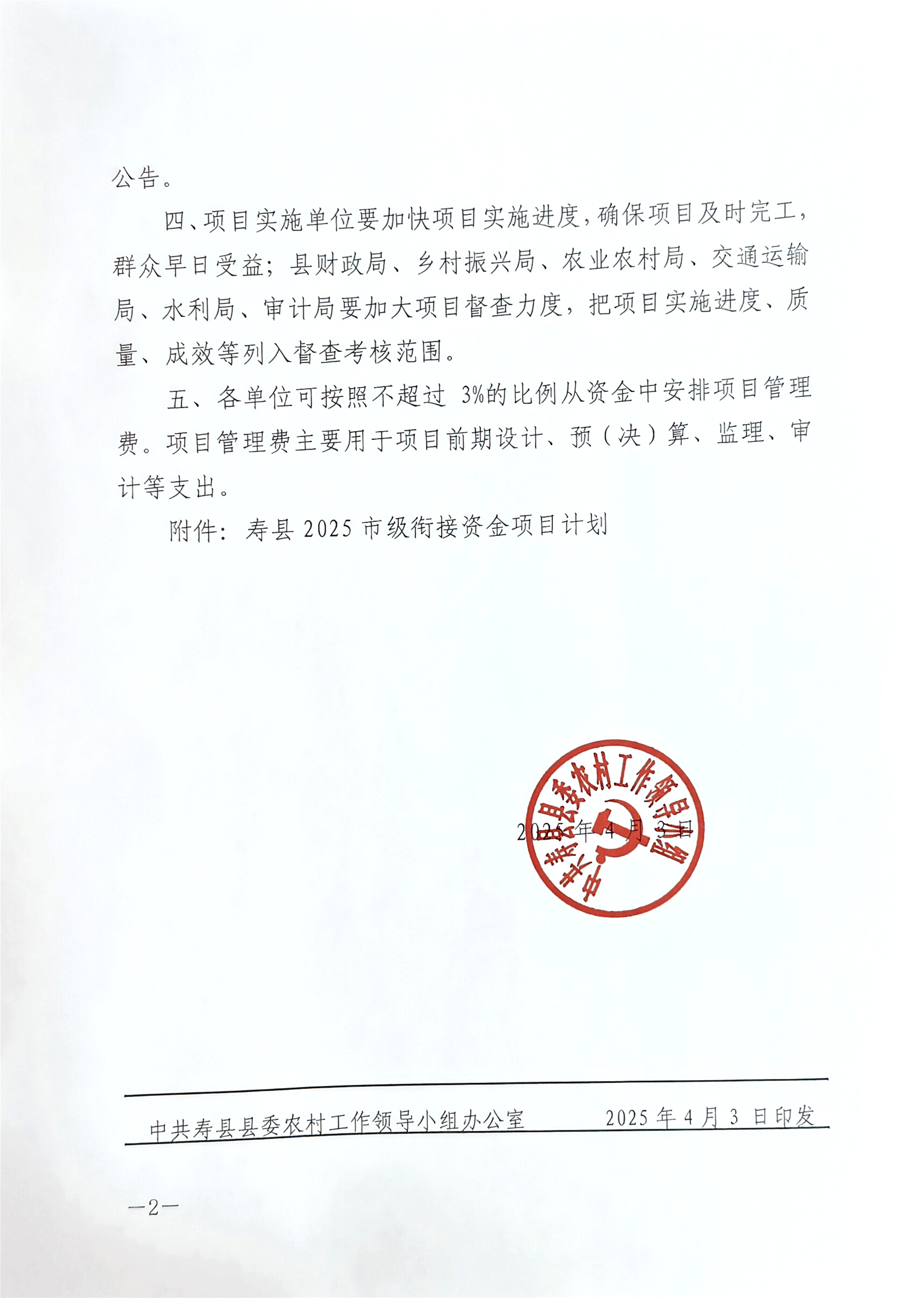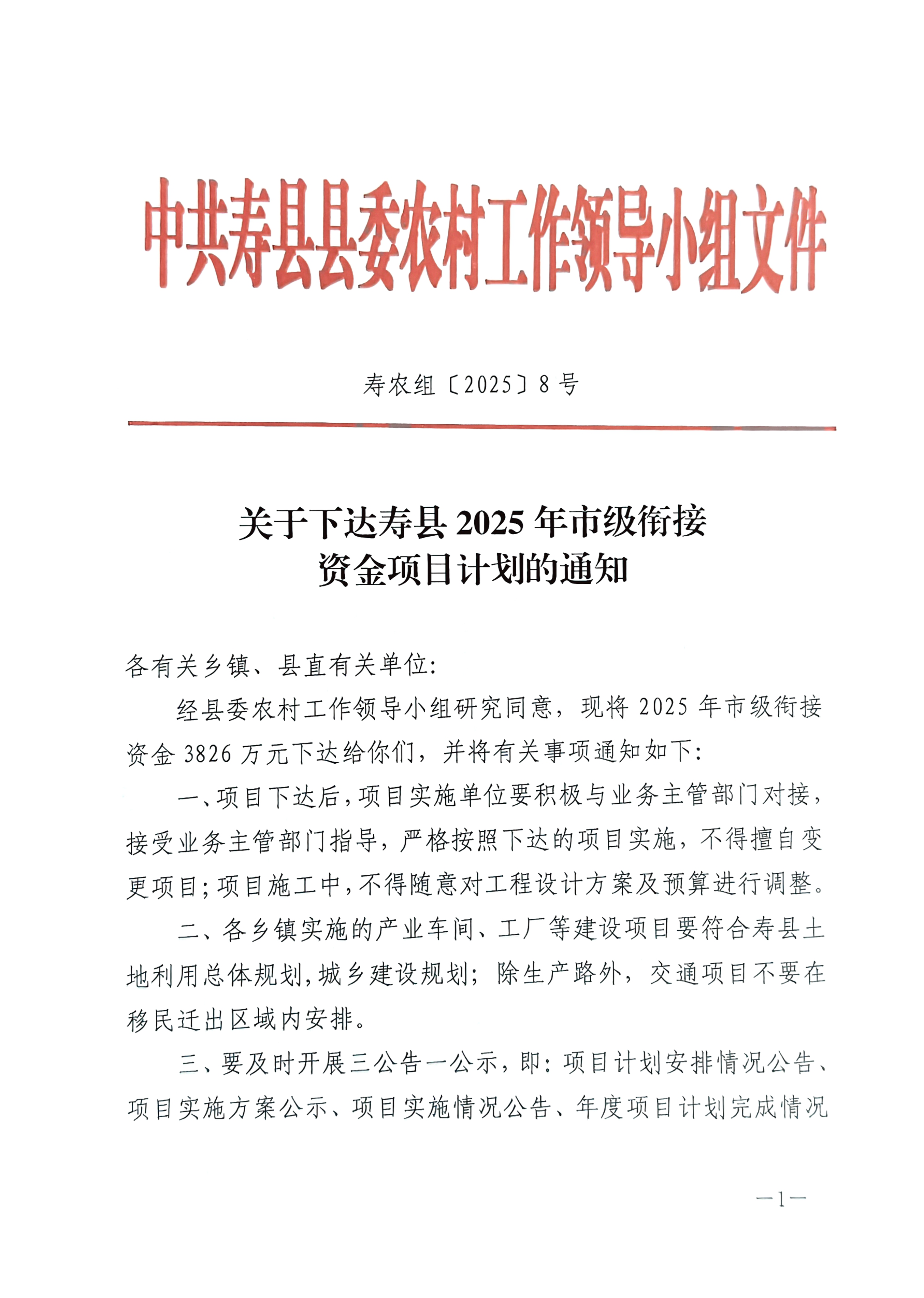 关于下达寿县2025年市级衔接资金项目计划的通知