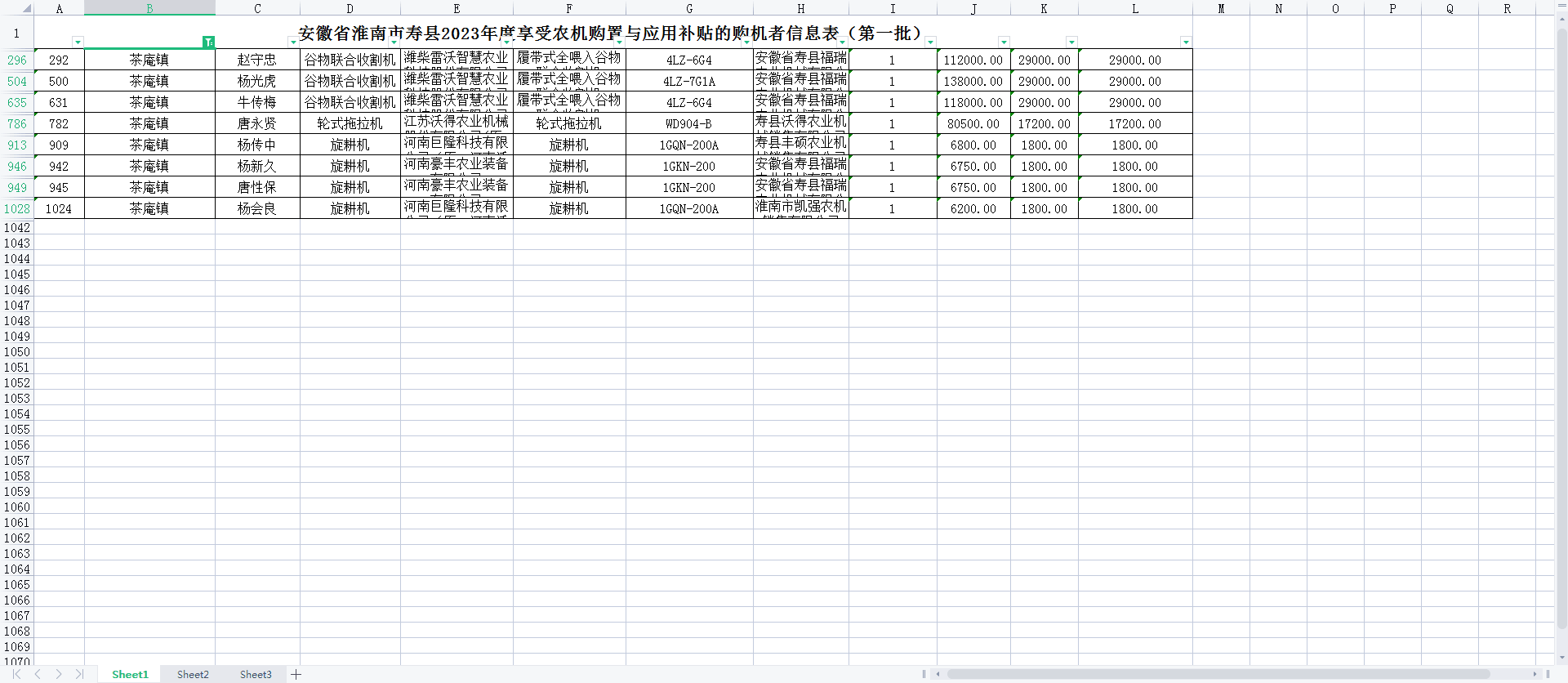 茶庵镇2023年第一季度农机购置补贴资金使用情况