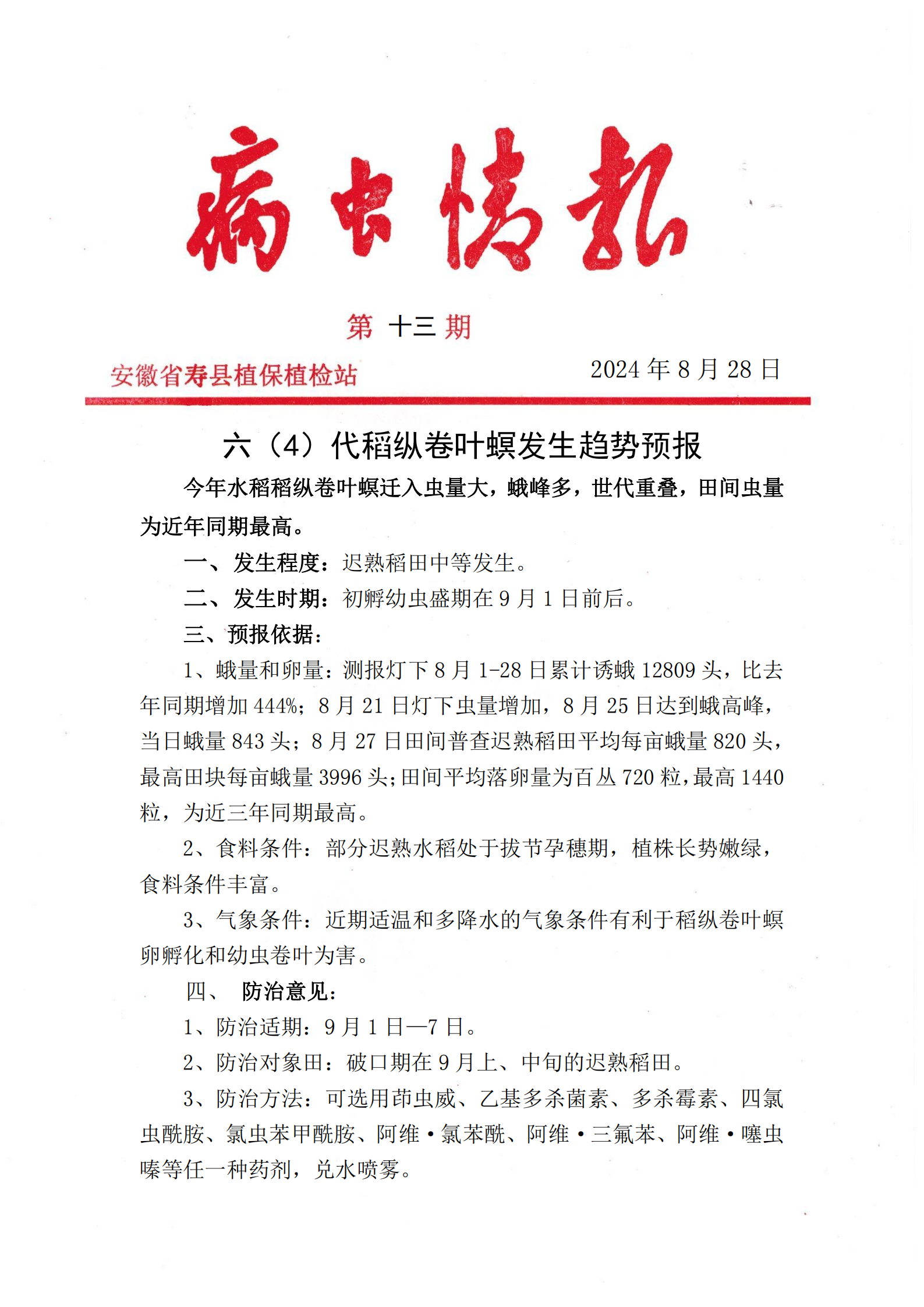 【强农惠农】《病虫情报》2024年第十三期