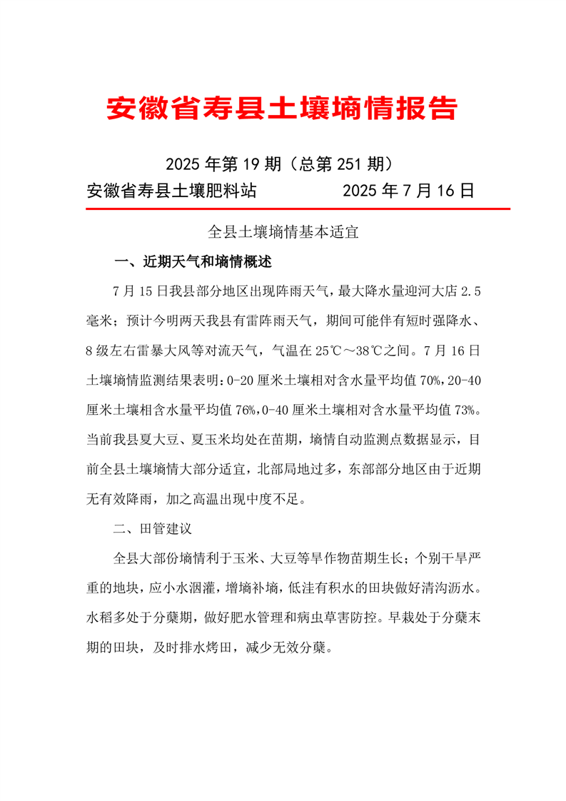 寿县《土壤墒情》2025年第19期