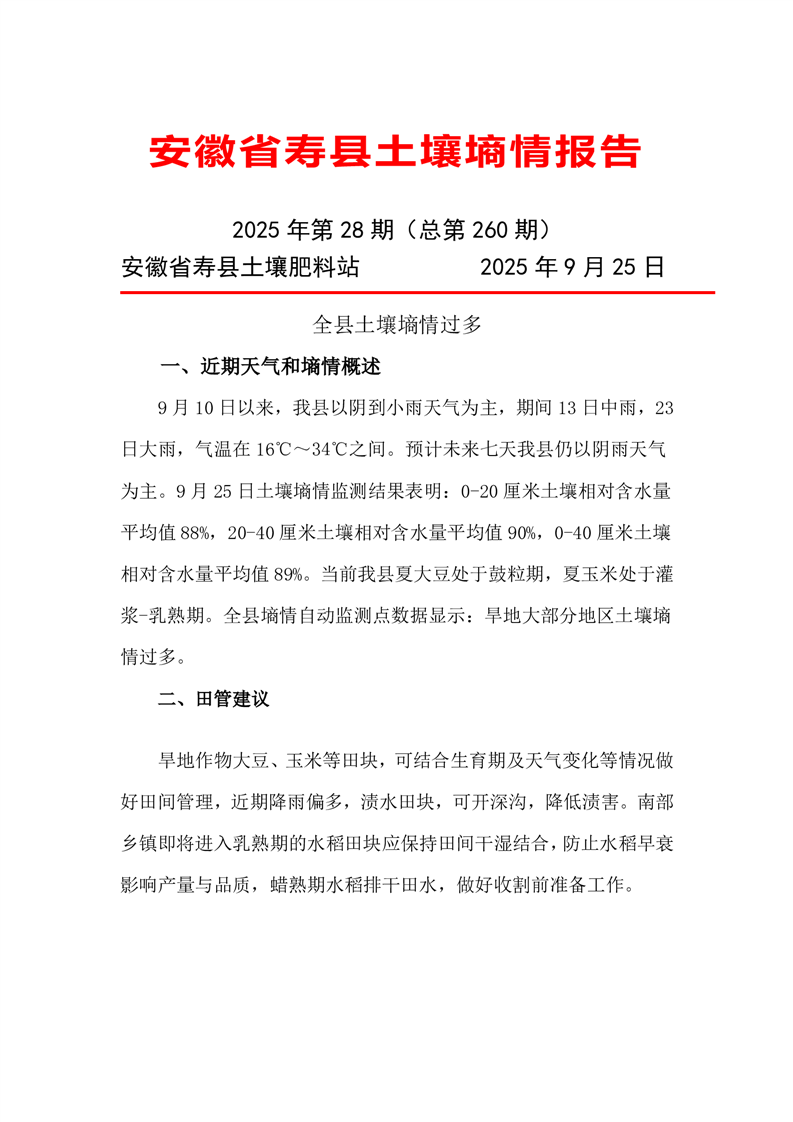 寿县《土壤墒情》2025年第28期
