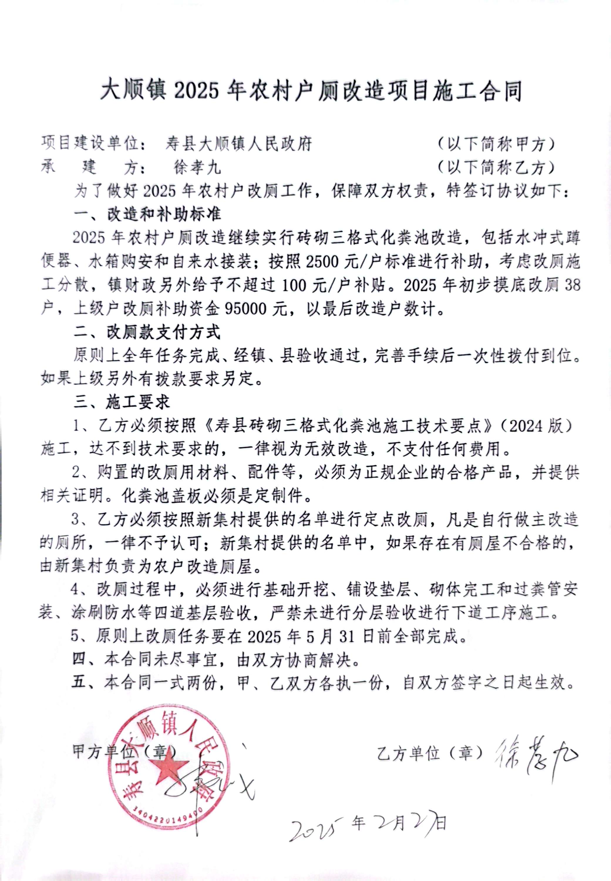 大顺镇2025年农村户厕改造项目施工合同