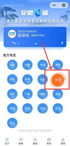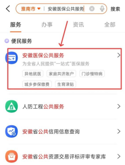 ③皖事通APP搜索“安徽医保公共服务”,点击进入“安徽医保公共服务小程序”淮南专区: