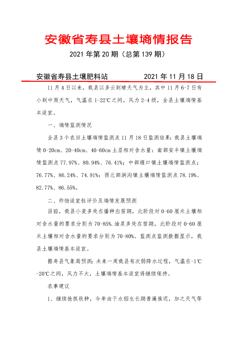 寿县《土壤墒情》2021年第20期