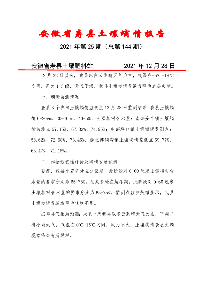 寿县《土壤墒情》2021年第25期