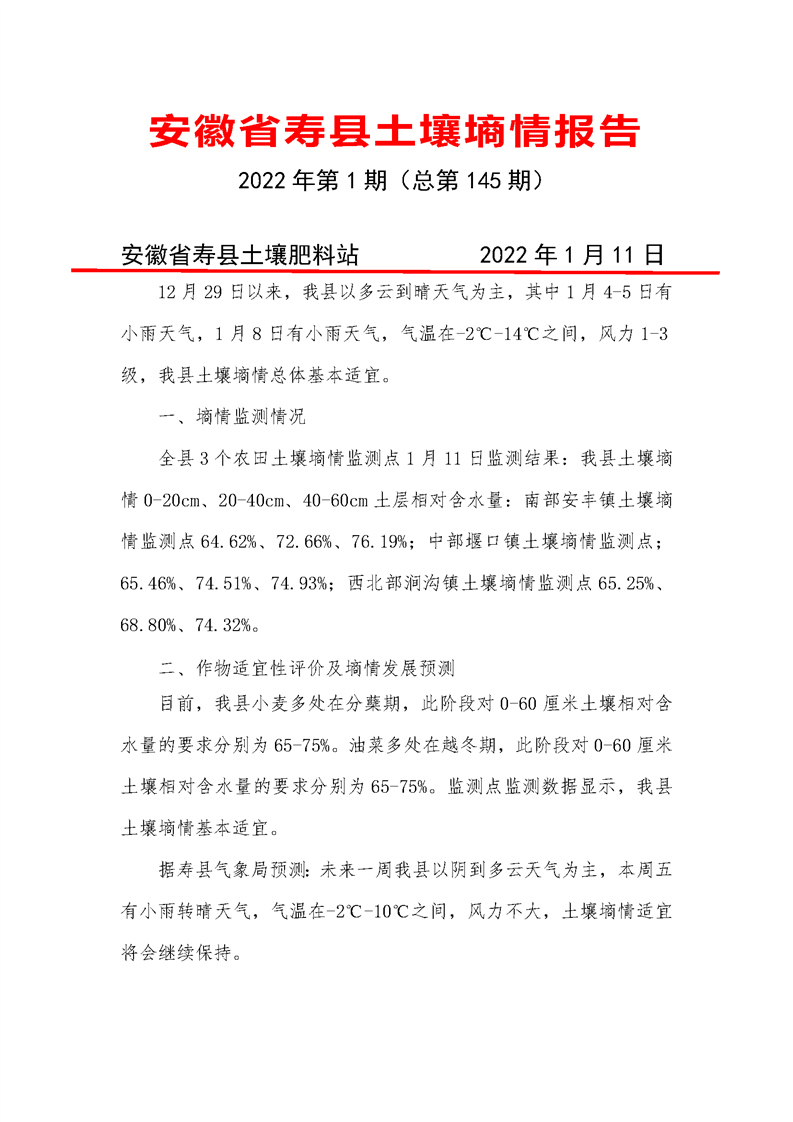 寿县《土壤墒情》2022年第1期