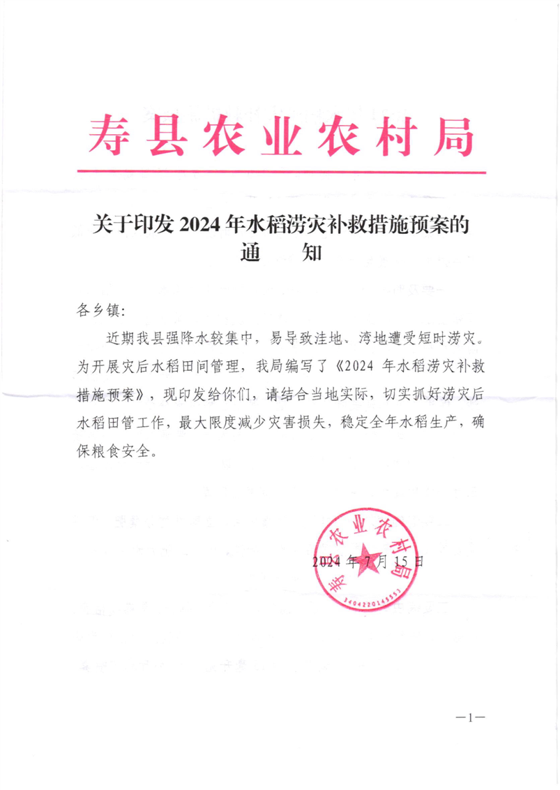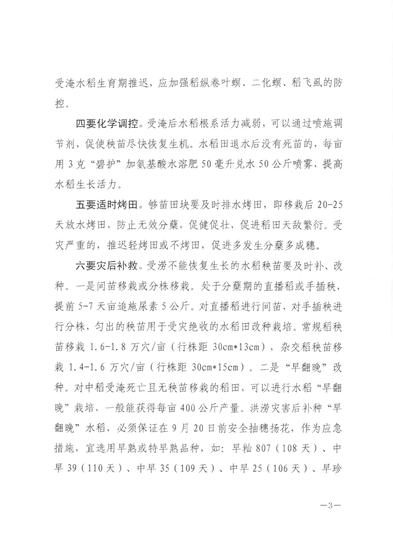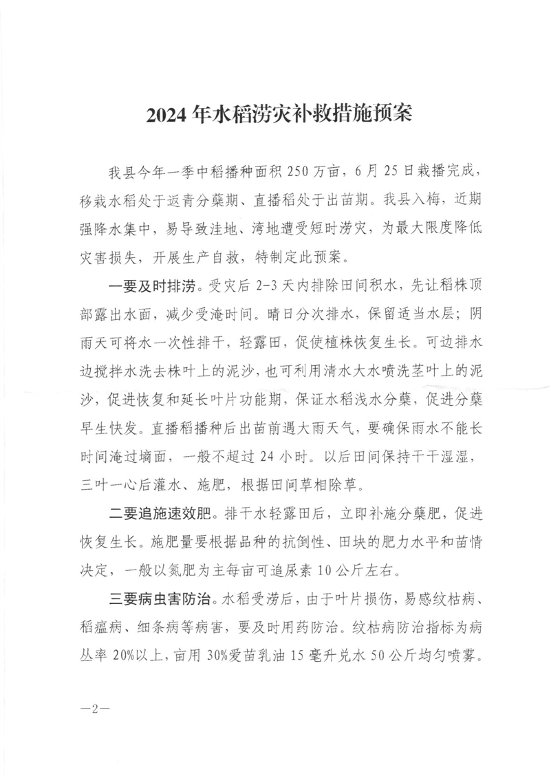 县农业农村局关于印发2024年水稻涝灾补救措施预案的通知